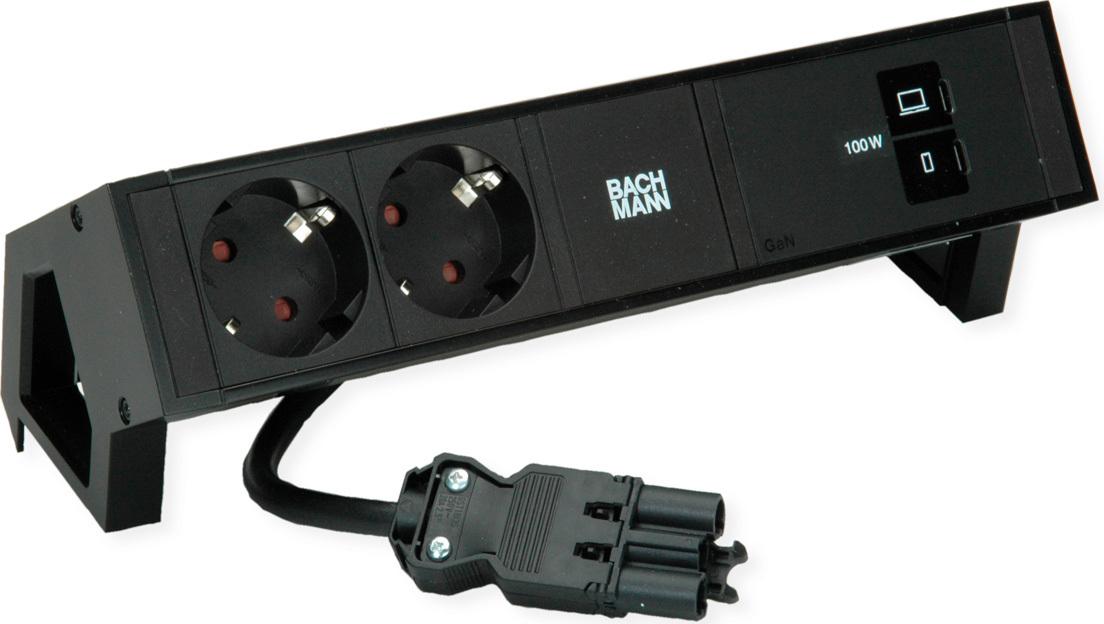 • BACHMANN DESK2 2xCEE7/3 USB Schwarz USB Charger C/C 100W GST18 0,2m (BM0025224)
