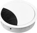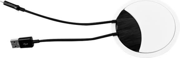 Loop Round sorgt an jedem Arbeitsplatz für geordnete Verhältnisse: Schnell und unkompliziert eingebaut, führt das Produkt die Kabel dorthin, wo sie benötigt werden. Die funktionale, in hochwertiger Optik gestaltete Kabeldurchführung verfügt über einen schwarzen Bürsteneinsatz sowie einen abnehmbaren, arretierbaren Deckel, der sich in vier Positionen fixieren lässt. So können auch dicke, starre Kabel den Deckel nicht aus der Verankerung lösen.Um die Kabeldurchführung zu installieren, reicht es, diese in eine gängige Standard-Ausbohrung einzudrücken. Alternativ kann die Kabeldurchführung direkt im Möbel verschraubt werden.