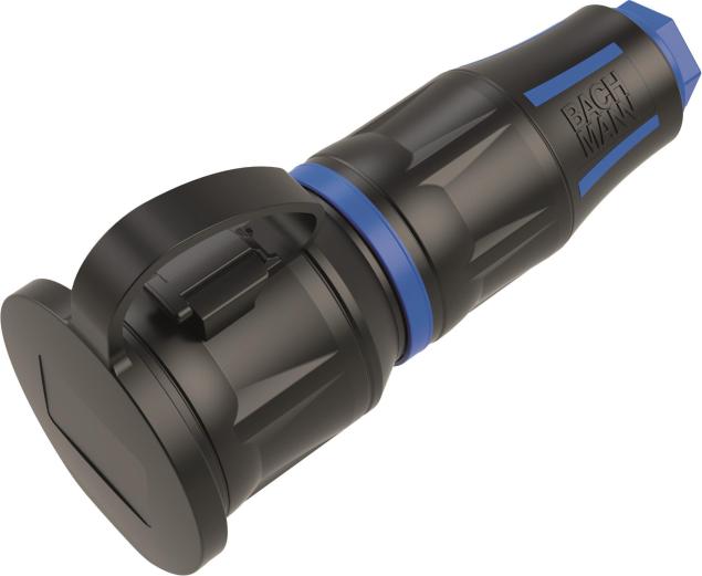 • BACHMANN Profi-Schutzkontaktkupplung CEE7/3, Deckelband, gummiert, IP54, schwarz / blau (BM0017349)