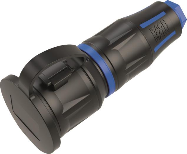 • BACHMANN Profi-Schutzkontaktkupplung CEE7/3, Deckelband, gummiert, Power-LED, IP54, schwarz / blau (BM0017350)