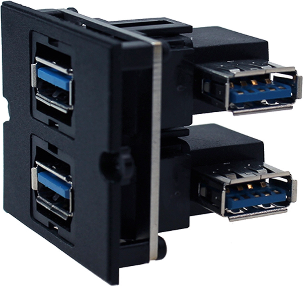Die modulare Einbauplatte von Bachmann bietet vielseitige Anschlussmöglichkeiten für moderne Umgebungen. Mit einem um 90° abgewinkelten Design verfügt dieses Produkt über zwei USB 3.0 Typ-A-Anschlüsse, die einen einfachen Zugang zu Stromversorgungsgeräten ermöglichen. Die 9-polige USB-Typ-A-Buchse auf der Rückseite bietet zusätzliche Anschlussmöglichkeiten, während das Paket zwei T6-Torx-Schrauben für eine sichere Installation enthält. Das aus PVC-Material gefertigte Produkt gewährleistet Langlebigkeit und die Einhaltung verschiedener Normen, darunter REACH und RoHS, sodass es für jeden Arbeitsbereich geeignet ist.