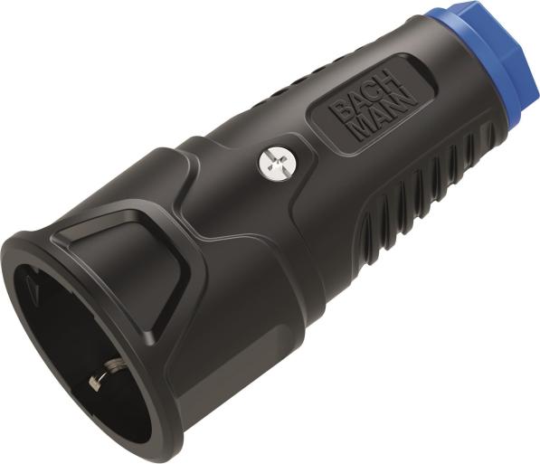 BACHMANN Schutzkontaktkupplung Vollgummi CEE7/3, IP20, schwarz / blau (BM0017345)