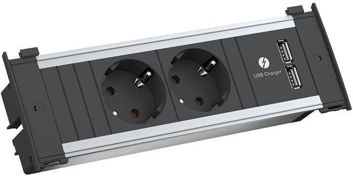 USB-Schnittstelle, geschlossen, Steckdosen um 35° gedreht, mit Erdung, 2 Steckdosenausgänge |
