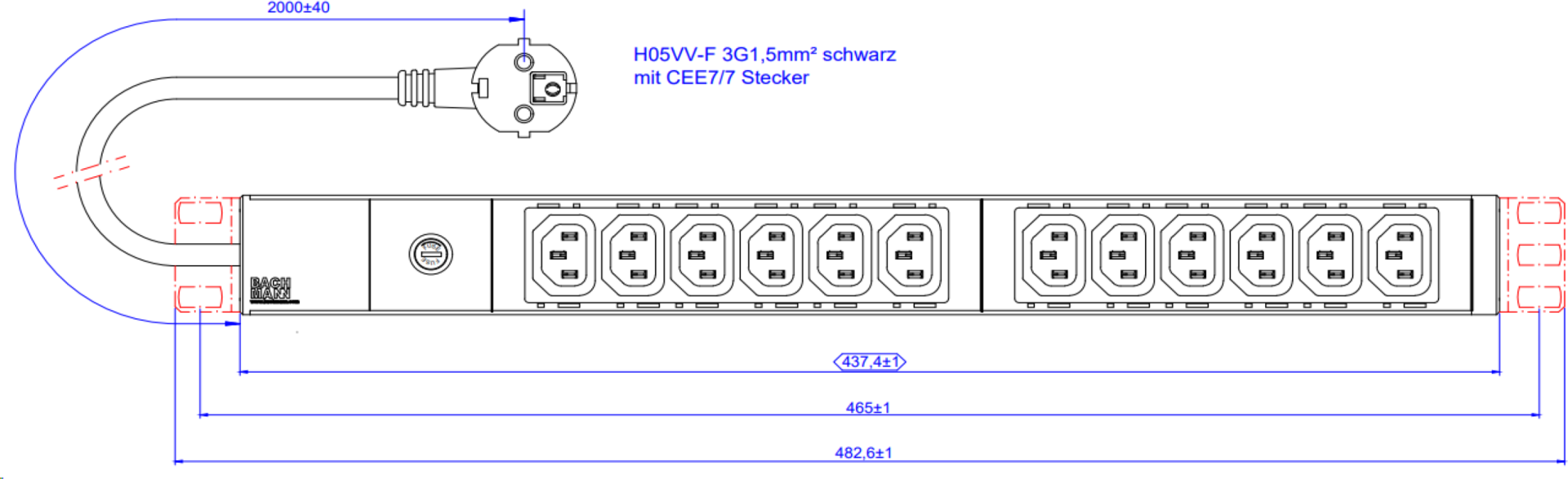 Bachmann Steckdosenleiste 19Z 1HE 12xC13 2, 0m 800.3723 (800.3723)