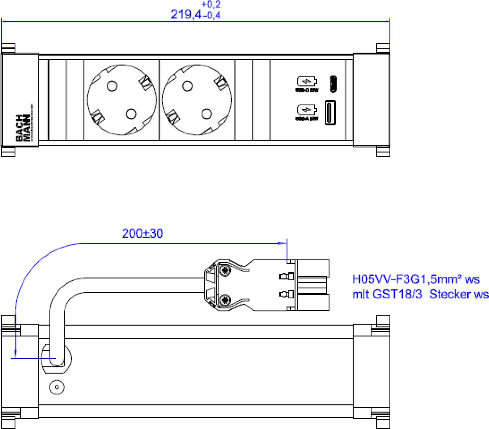 Bachmann Steckdosenleiste 2xCEE7/3 1xUSB 916.700 (916.700)