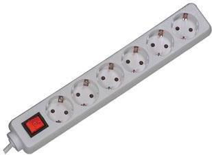 SMART Steckdosenleiste im robusten Design • 6- fach Steckdosenleiste Kunststoff, geschraubt • Steckdosen um 35° gedreht • 2 poliger, beleuchteter Schalter • Kabel H0V5VV-F3G 1,5mm.