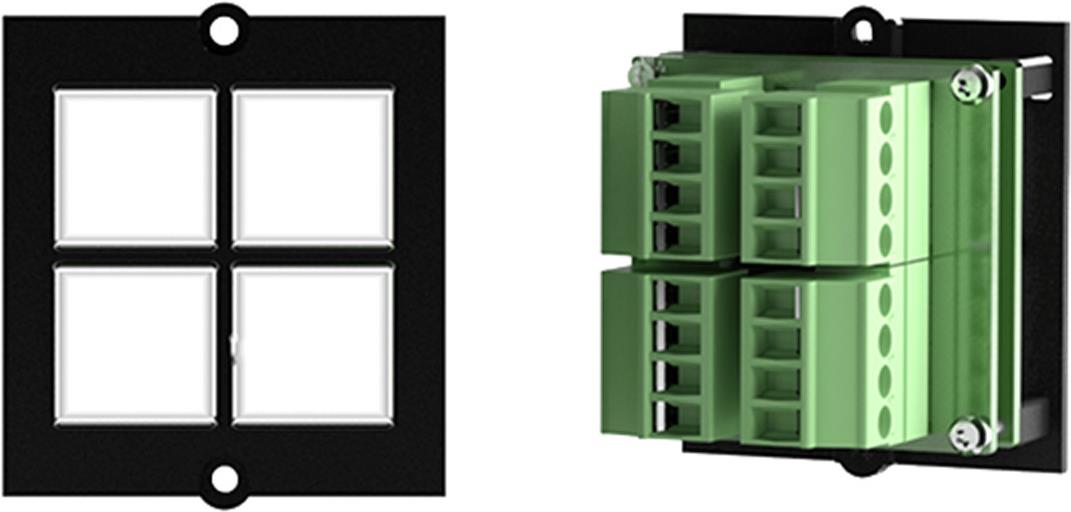 Bachmann Tastenmodul 4-fach, blau illuminiert, frei beschriftbar, Universalmodul zur Einbindung anderer Steuersysteme (5V/12V/24v/48V) einstellbare Spannung für LED, Steck-Schraub-Klemme: 4-fach; 2x Schraube Torx (917.195)