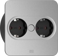 Bachmann TWIST 2 Metallische Abdeckscheibe eckig, Silber matt lackiert, 2xSchutzkontaktsteckdosen schwarz mit erhöhtem Berührungsschutz, Zuleitung 2,0m H05VV-F3G1,5mm² schwarz mit Aderendhülsen und beigelegtem Schutzkontakt-Montagestecker, verpackt im Karton. (946.009)