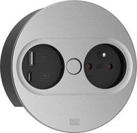 Bachmann TWIST 2 Metallische Abdeckscheibe rund, Silber matt lackiert, 1xUTE Frankreich Steckdose schwarz mit erhöhtem Berührungsschutz, 1xUSB A/C 22W Charger, Zuleitung 0,2m H05VV-F3G1,5mm² schwarz mit GST18 Stecker schwarz, verpackt im Karton (946.014)