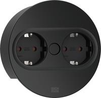 Bachmann TWIST 2 Metallische Abdeckscheibe rund, schwarz matt, ähnlich RAL 9005 30GE seidenmatt, 2xSchutzkontaktsteckdosen schwarz mit erhöhtem Berührungsschutz, Zuleitung 2,0m H05VV-F3G1,5mm² schwarz mit Aderendhülsen und beigelegtem ...