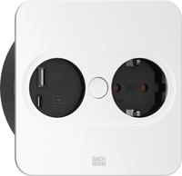 Bachmann TWIST 2 Metallische Abdeckscheibe eckig, weiß matt, ähnlich RAL 9010 30GE seidenmatt, 1xSchutzkontaktsteckdose schwarz mit erhöhtem Berührungsschutz, 1xUSB A/C 22W Charger, Zuleitung 2,0m H05VV-F3G1,5mm² schwarz mit Aderendhülsen und beigelegtemSchutz (946.205)