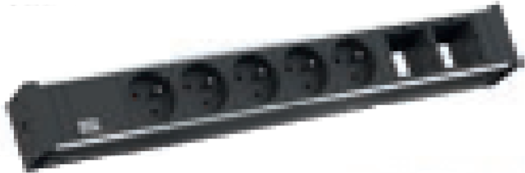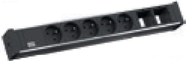 Bachmann Universal Steckdoseneinheit 2 x Custom Modul, 5 x UTE 230V, schwarz, um 35° gedreht, 3 m Zuleitung H05VV-F3G1,5mm² mit Winkelstecker 90°, inkl. Haltewinkel. (922.083)