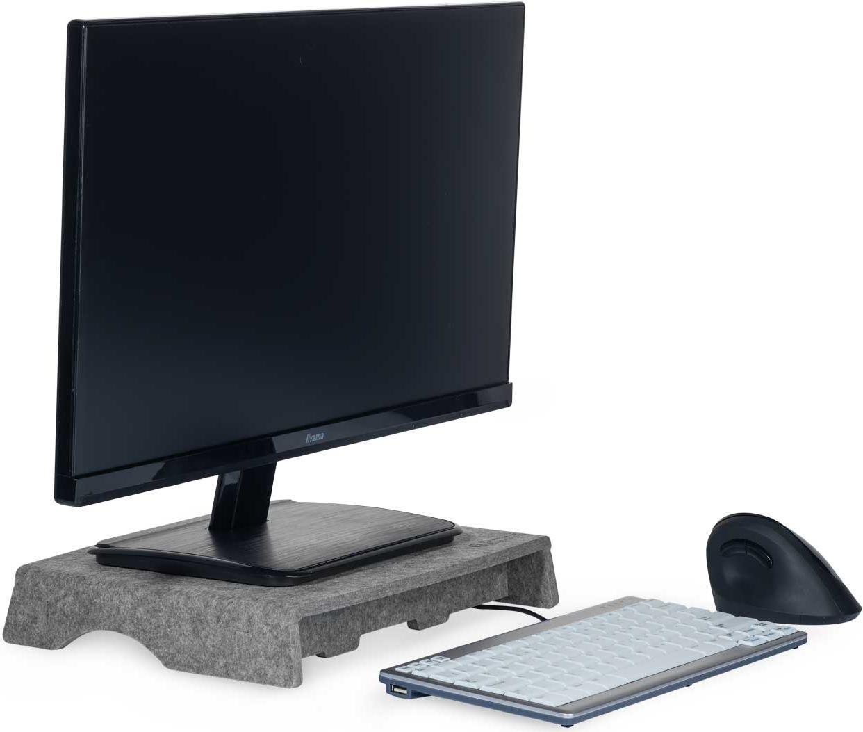 Der Monitorständer Q-Riser 50 Circular ist aus nachhaltigem Material gefertigt und speziell für große Flachbildschirme mit größeren Standfüßen konzipiert. Sie können den Standfuß Ihres Bildschirms auf die 300 mm x 250 mm große Fläche stellen und Ihren Flachbildschirm um 50 mm anheben. Mit dem Q-Riser 50 Circular können Sie Ihren Bildschirm auf die optimale, ergonomische Betrachtungshöhe bringen. Dieser Monitorständer ist aus recyceltem PET-Filzmaterial hergestellt, das nicht nur nachhaltig, sondern auch stabil ist. Der Q-Riser 50 Circular ist eine Investition in die Zukunft, für eine gesündere Arbeitsweise und für eine bessere Umwelt.