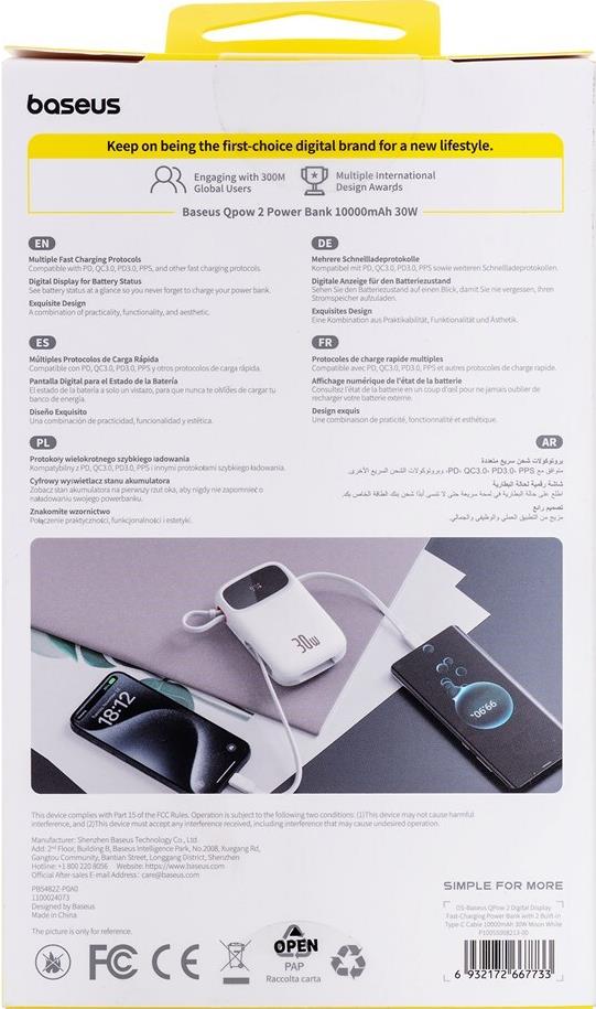 • Baseus QPow2 Lithium Polymer (LiPo) 10000 mAh Weiß (P10055008213-00)