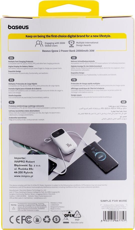 • Baseus QPow2 Lithium Polymer (LiPo) 20000 mAh Weiß (P10055009213-00)