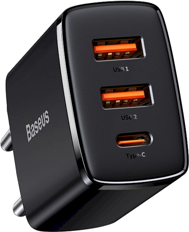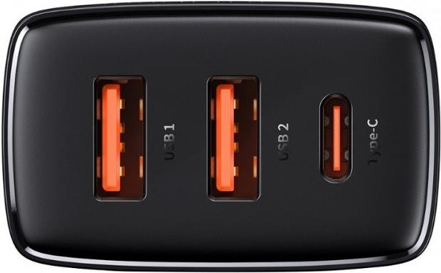 Baseus Wandladegerät 30W 2xUSB + USB-C QC3.0 PD3.0, schwarz (BASADA47332)