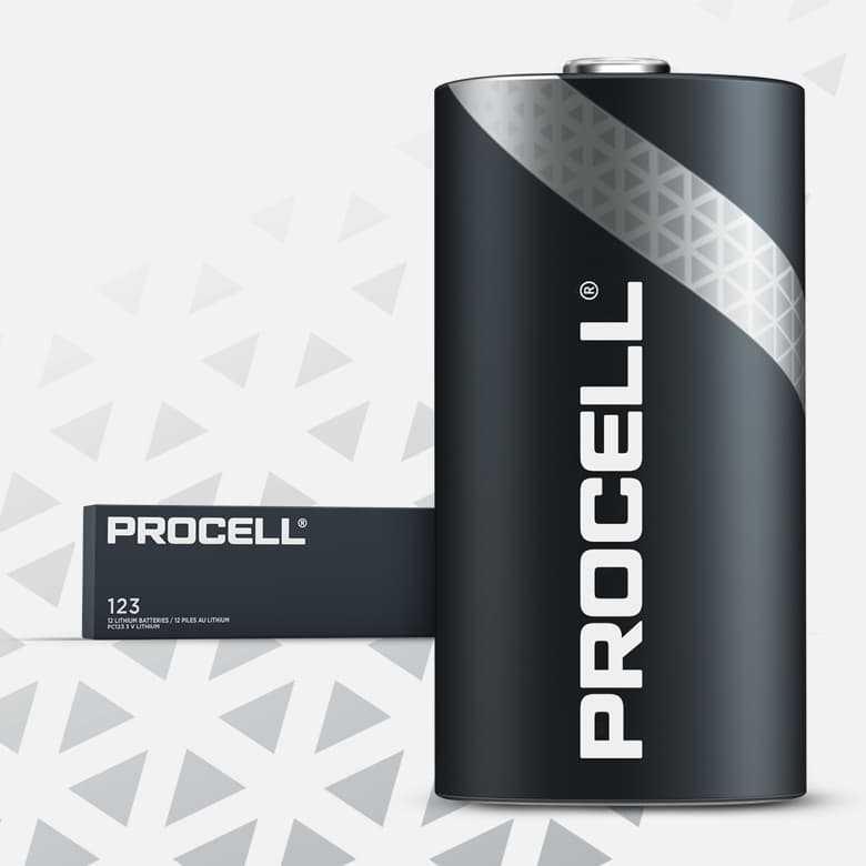 Die Procell High Power Lithium 123 Industriebatterien wurden entwickelt, um eine zuverlässige und sichere Leistung in professionellen Geräten mit hoher Entladungsrate bei intermittierender oder kontinuierlicher Entladung, wie z. B. Sicherheitsausrüstung, zu gewährleisten.