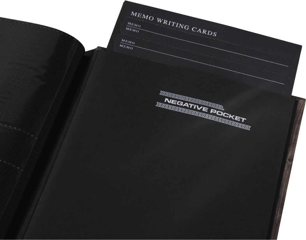 - schwarze Innenseiten mit Einstecktaschen und Beschriftungsstreifen zum schnellen und einfachen Archivieren