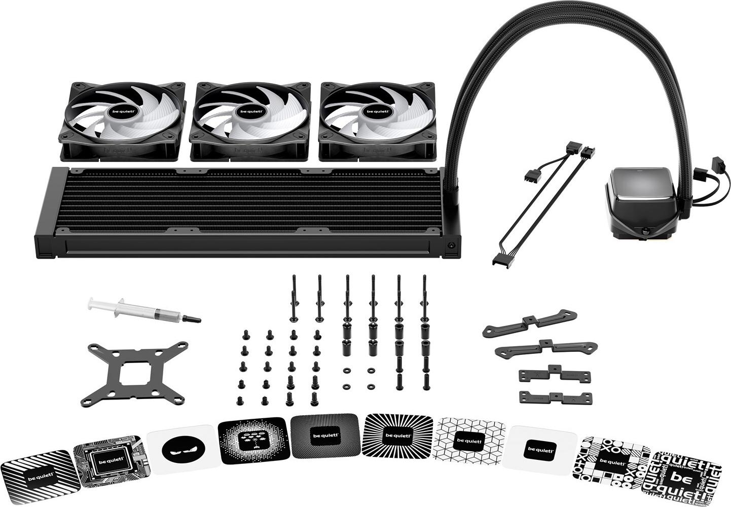 Das be quiet! Pure Loop 3 LX Prozessor-Wasserkühlungssystem wurde für das Wärmemanagement in Ihrem PC-System entwickelt. Mit einem Lüfterdurchmesser von 120 mm und einer Höhe von 25 mm liefert es eine Kühlleistung bei einer Drehzahl von 2100 U/min und sorgt so dafür, dass Ihr Prozessor auch unter Last reibungslos läuft. Das System verfügt über ARGB-Lüfter für eine anpassbare Beleuchtung, die Ihrer Kühllösung eine visuelle Komponente hinzufügt. Dieses Gerät ist mit einer Reihe von Sockeln kompatibel, darunter LGA1155, LGA1150, LGA1151, Sockel AM4, LGA1200, LGA1700, Sockel AM5 und LGA1851, wodurch es vielseitig für verschiedene Konfigurationen einsetzbar ist. Im Lieferumfang sind wichtige Komponenten wie Wärmeleitpaste, Montagesätze, ein PWM-Verlängerungskabel und ein ARGB-Verlängerungskabel enthalten, die eine nahtlose Installation ermöglichen. Der Aluminiumkühler mit Kupferbasis sorgt für eine zuverlässige Wärmeableitung, während das Rifle-Lager einen langlebigen Lüfterbetrieb gewährleistet. Mit einer Leistungsaufnahme von nur 5,4 W arbeitet dieses Kühlsystem effektiv und effizient in Ihrem Rig.