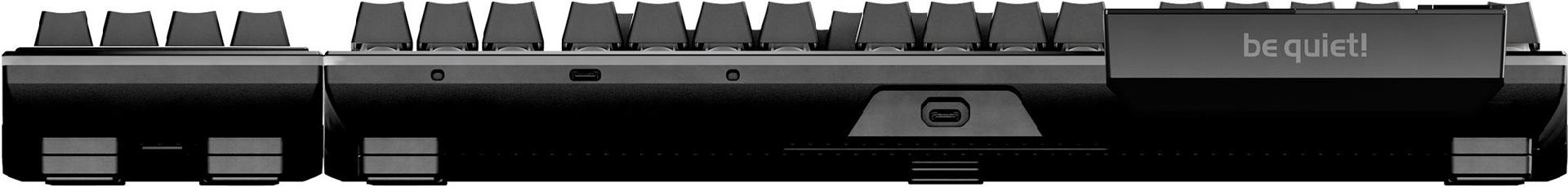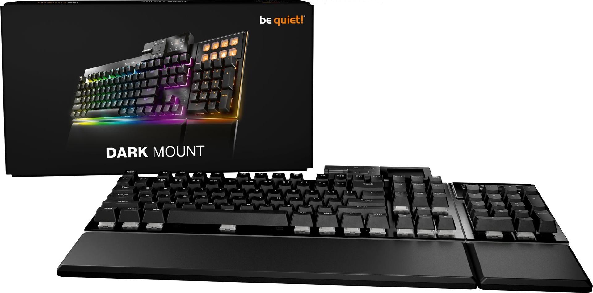 Die Tastatur be quiet! Dark Mount vereint Funktionalität und Stil für ein verbessertes Tipperlebnis. Mit einem anpassbaren Media-Dock und acht programmierbaren Tasten bietet diese Tastatur Anpassungsmöglichkeiten für verschiedene Benutzer und Aufgaben. Die mechanische Tastatur verfügt über be quiet! Silent Tactile-Tastenschalter für ein leises und reaktionsschnelles Tippgefühl und eignet sich somit ideal für Arbeits- und Gaming-Umgebungen. Die Tastatur ist mit einer RGB-Hintergrundbeleuchtung pro Taste ausgestattet, die ihr eine persönliche Note verleiht und auch bei schlechten Lichtverhältnissen für optimale Sichtbarkeit sorgt. Sie besteht aus strapazierfähigen Materialien wie einer Aluminium-Oberplatte und PBT-Tastenkappen und ist für den intensiven Gebrauch ausgelegt. Das abnehmbare 2-m-Kabel sorgt für Flexibilität, während die einstellbare Höhe und die mitgelieferte Handballenauflage den Komfort bei längeren Sitzungen erhöhen.