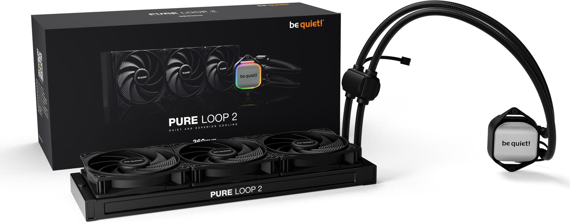 Der be quiet! Pure Loop 2 ist eine herausragende Lösung im Bereich der Flüssigkühlsysteme für Prozessoren. Er wurde sowohl für Enthusiasten als auch für Profis entwickelt und kombiniert effiziente Kühlung mit einem leisen Betrieb, um Ihr Computererlebnis zu verbessern. Mit einem 360-mm-Aluminiumradiator und einem Kupferkühlkörper sorgt es für eine effiziente Wärmeableitung und hält Ihren Prozessor auch bei intensiver Arbeitsbelastung kühl. Das System ist mit drei 120-mm-Lüftern mit Wälzlagern und einem 4-Pin-Lüftermotor ausgestattet, die einen Geräuschpegel von nur 17,2 - 36,8 dBA für eine leise Computerumgebung erzeugen.