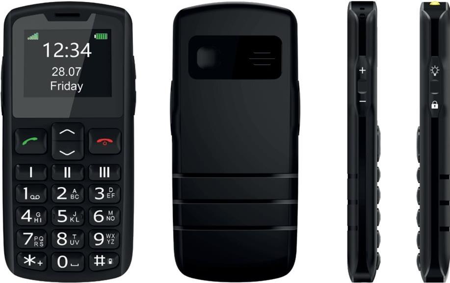 | Zusätzliche Funktionen | SOS-Taste, Benachrichtigungs-LED, Wecker, SOS SMS, SOS-Anruf, Anrufweiterleitung, Anklopfen, Anrufer-ID, Tastenfeld mit Hintergrundbeleuchtung |