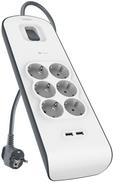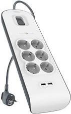 Der Überspannungsschutz von Belkin schützt Geräte vor schädlichen Stromspitzen und bietet mit seinen zahlreichen Ausgangsoptionen praktische Funktionen. Mit einer Länge von 2 m ermöglicht dieses Netzkabel eine vielseitige Platzierung und einfache Verwendung in jeder Umgebung. Dieser Überspannungsschutz verfügt über sechs Ausgangsanschlüsse, sodass mehrere Geräte gleichzeitig mit Strom versorgt werden können, ohne die Sicherheit zu beeinträchtigen. Die Überspannungsenergie von 650 Joule bietet einen robusten Schutz, während die Kontrollleuchte „Protected“ die Gewissheit gibt, dass die Geräte vor elektrischen Gefahren geschützt sind. Eine Kombination aus Strom- und USB-Typ-A-Anschlüssen eignet sich für eine Vielzahl von Elektronikgeräten und macht dieses Gerät zu einer praktischen Lösung für zu Hause oder im Büro.