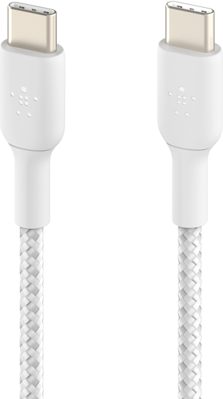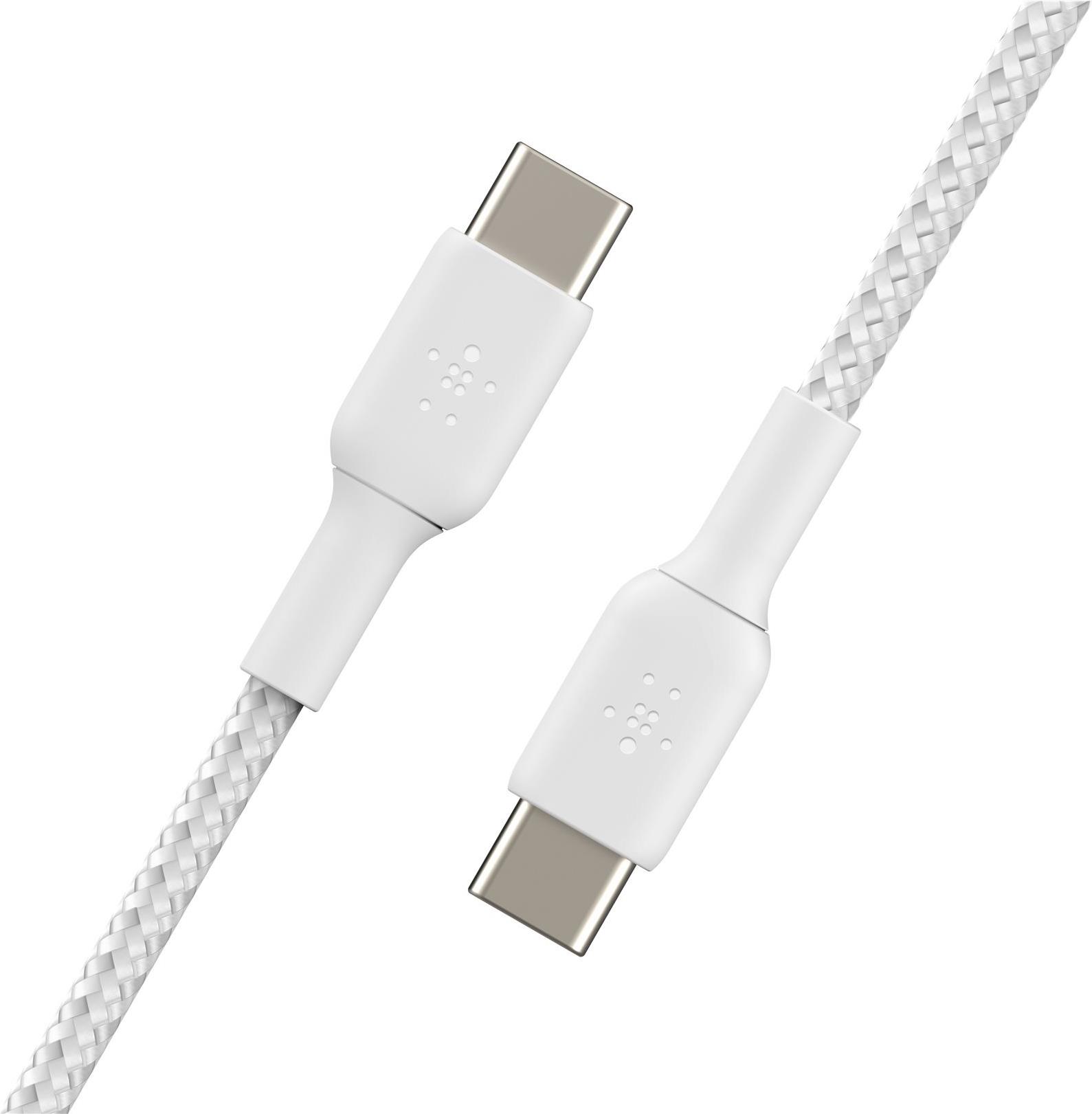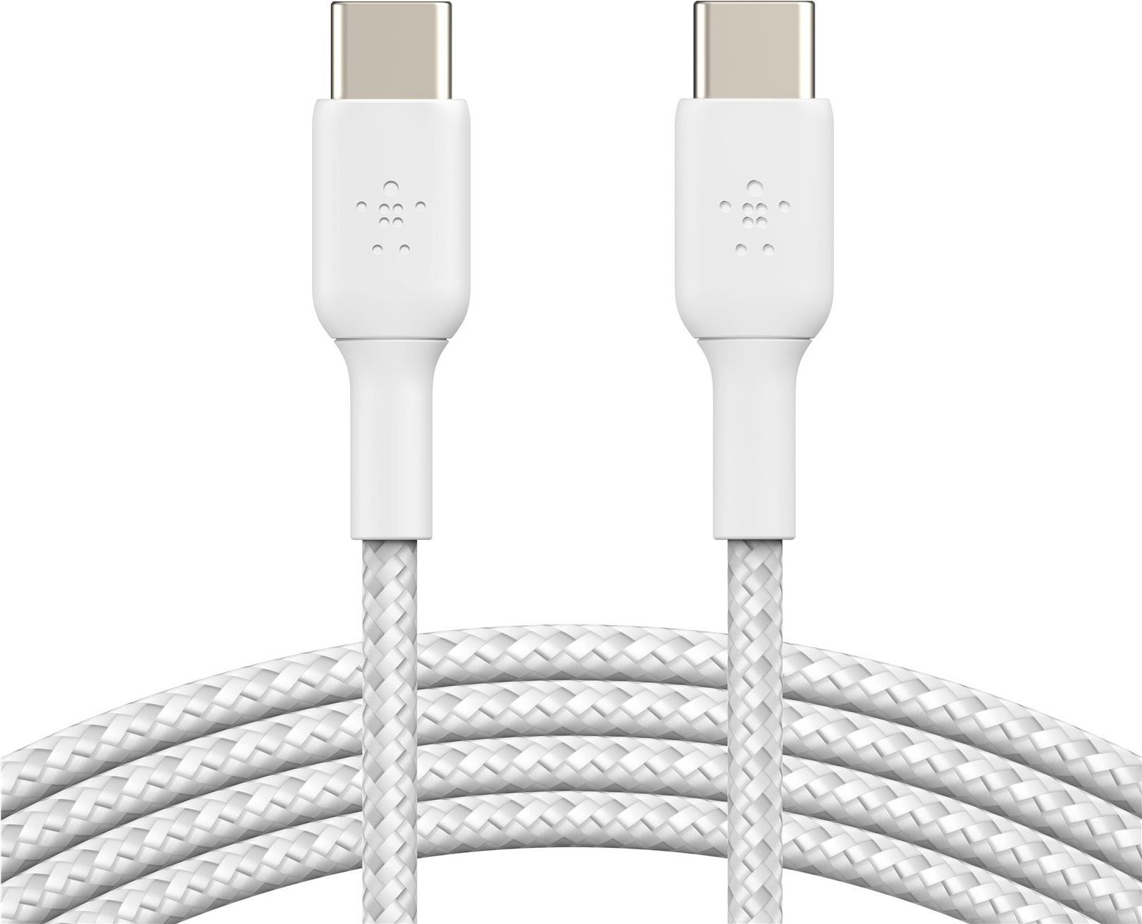 Belkin BoostCharge - USB-Kabel - 24 pin USB-C (M) zu 24 pin USB-C (M) - USB 2,0 - 3 A - 2,0m - USB Power Delivery (60W), geflochtenes Kabel - weiß (CAB004BT2MWH)