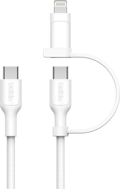 Erleben Sie nahtlose Konnektivität mit dem BoostCharge Pro 2-in-1-Kabel von Belkin, das auf Vielseitigkeit und Effizienz ausgelegt ist. Dieses Kabel verfügt über ein duales Steckersystem, das sowohl Apple Lightning- als auch USB-C-Optionen umfasst, wodurch es sich ideal zum Laden und zur Datenübertragung zwischen verschiedenen Geräten eignet. Mit einer Schnellladefunktion von bis zu 60 W können Nutzer ihre Geräte schnell und ohne Verzögerung aufladen.