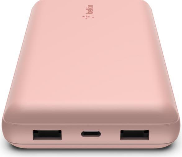 Belkin BOOST CHARGE - Powerbank - 20000 mAh - 15 Watt - 3 Ausgabeanschlussstellen (2 x USB, 24 pin USB-C) - auf Kabel: USB, USB-C - Rosegold