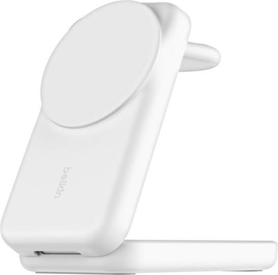 Der Belkin UltraCharge ist ein 3-in-1-Wireless-Ladeständer, mit dem Sie Ihr Mobiltelefon, Ihre Smartwatch und Ihre kabellosen Kopfhörer gleichzeitig aufladen können. Mit seinem schlanken und klappbaren Design, dem einstellbaren Winkel und der leichten Struktur ist er besonders praktisch und lässt sich überall problemlos verwenden. Mit einem großzügigen 1,5 m langen USB-C-zu-USB-C-Kabel unterstützt diese Ladestation eine Ausgangsleistung von bis zu 25 W und ist mit den Qi2-Ladestandards kompatibel, sodass alle Ihre Geräte schnell und zuverlässig aufgeladen werden können.