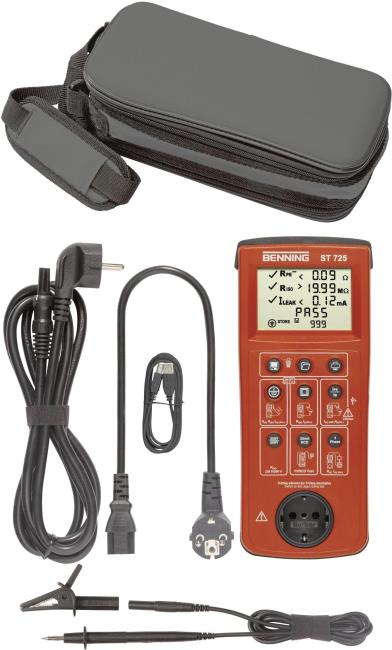 BENNING Prüfgerät Gerätetester ST 725 Batterie-/Netzbetrieb inkl. Tasche/Batterien Leitungsprüfer Messgerät Prüfstation (50316)