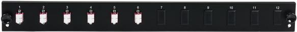 EFB-Elektronik Bestückte 12 Port Frontblende mit 6 x LC Duplex Kupplung OM4 vertikal, grau Hersteller: EFB Elektronik (SB-FP-6SC-S-OM4)