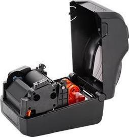 Bixolon XD3-40t, 8 Punkte/mm (203dpi), EPL, ZPLII, USB, schwarz Etikettendrucker, Thermotransfer, Auflösung: 8 Punkte/mm (203dpi), Medienbreite (max): 118mm, Druckbreite (max.): 104mm, Rollendurchmesser (max.): 127mm, Geschwindigkeit (max.): 127mm/Sek., USB (Typ B), Emulation: EPL, ZPLII, SLCS, RAM: 64MB, Flash: 128MB, Black Mark Sensor, Gap Sensor, inkl.: Kabel (USB), Netzteil, Netzkabel, Farbe: schwarz (W125771600) (geöffnet)