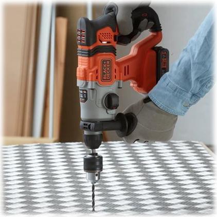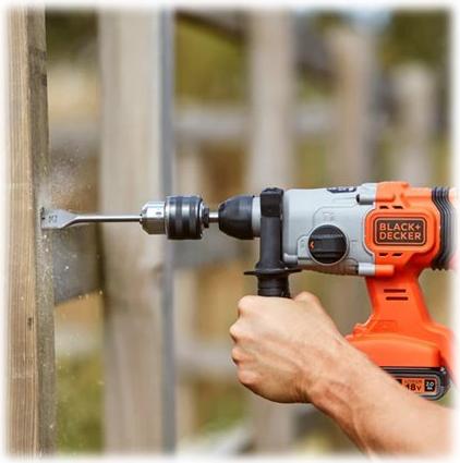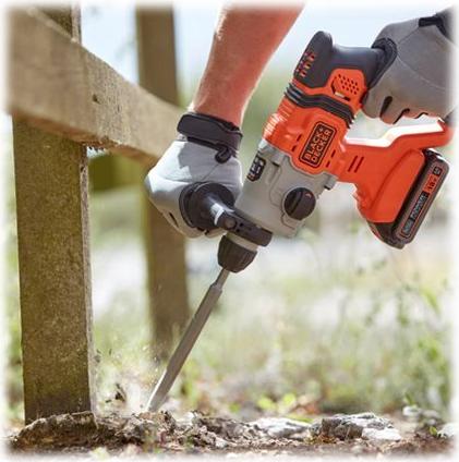 Leistungsstarker 18 Volt SDS-plus Akku-Bohrhammer für einfache Erledigung von Bohrarbeiten ohne Stromanschluss und Kabel. 3 Funktionsmodi erlauben Schlagbohren, Bohren und sogar leichte Meißelarbeiten. Mit 1,2 Joule Schlagenergie lässt sich auch das Bohren in harten Materialien wie Beton leicht bewältigen. Dieser Bohrhammer wird ohne Akku und Ladegerät geliefert zur Ergänzung im 18 Volt Powerconnect Akku-System. 18V Lithium-Ionen System-Akkus sind mit allen BLACK+DECKER 18V Akku-Werkzeugen, -Gartengeräten und -Haushaltsgeräten verwendbar.