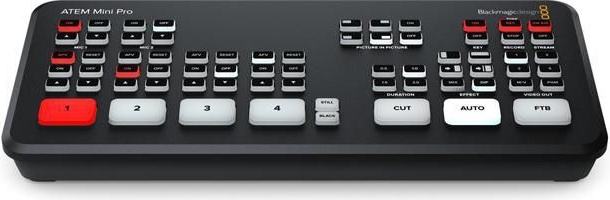 Der ATEM Mini Pro ist fix eingerichtet und bedienfreundlich. Seine Features umfassen vier skalierbare HDMI-Eingänge, einen USB-Webcam-Ausgang, einen HDMI-Ausgang und einen Fairlight Audiomixer mit EQ und Dynamiktools, einen DVE-Prozessor für Bild-im-Bild-Darstellungen, Übergangseffekte, einen Greenscreen-Chromakeyer und einen 20 Standbilder fassenden Media Pool für Titel. Mit dem ATEM Mini Pro ist auch die Möglichkeit für Direktaufzeichnungen auf USB-Flashspeicher in H.264 sowie Direktstreaming via Ethernet auf YouTube Live und mehr gegeben. Der Mischer bietet Ihnen einen Multiviewer mit Ansichten für vier Kameras, Vorschau und Programm sowie für den Status von Aufzeichnung, Streaming und Audio.