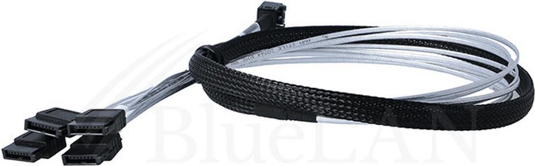 BlueLAN internes MiniSAS Hybrid Kabel, passiv, Mini-SAS HD (SFF-8643) auf 4x SATA Straight to Straight, SAS 3.0, Impedanz = 100 Ohm, bis zu 6 Gbps Datenraten, AWG30, 1 Meter (BLIS434S-100CM)