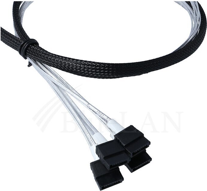 Hochgeschwindigkeits-Rack-LösungBlueLAN BLIS434S-100CM 1 Meter MiniSAS Hybrid Kabel mit SFF-8643 auf 4x SATA Verbindung, für den internen Anschluss von 6Gb SAS-Geräten an 12Gb SAS (wie Festplatten, Controller, Storage ...