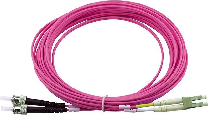 BlueOptics© Duplex LWL Patchkabel, LC-UPC/ST-PC beige, 7.5 Meter, Multimode G50/125µm, OM4, Eingangsdämpfung: unter 0.2dB, Markenfaser, LSZH magenta / violett, 2.0mm Tube, Keramik Ferrule, inkl. Messprotokoll (SFP3133FU7.5MK)