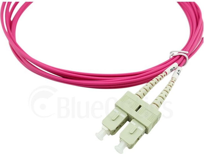 BlueOptics© Duplex LWL Patchkabel, SC-UPC/SC-UPC beige, 5 Meter, Multimode G50/125µm, OM4, Eingangsdämpfung: unter 0.2dB, Markenfaser, LSZH magenta / violett, 2.0mm Tube, Keramik Ferrule, inkl. Messprotokoll (SFP3232FU5MK)