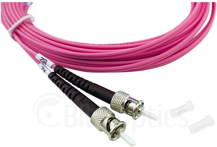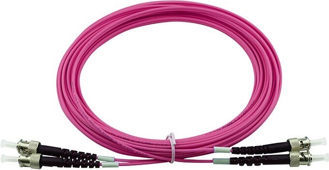 BlueOptics© Duplex LWL Patchkabel, ST-PC/ST-PC beige, 2 Meter, Multimode G50/125µm, OM4, Eingangsdämpfung: unter 0.2dB, Markenfaser, LSZH magenta / violett, 2.0mm Tube, Keramik Ferrule, inkl. Messprotokoll (SFP3333FU2MK)