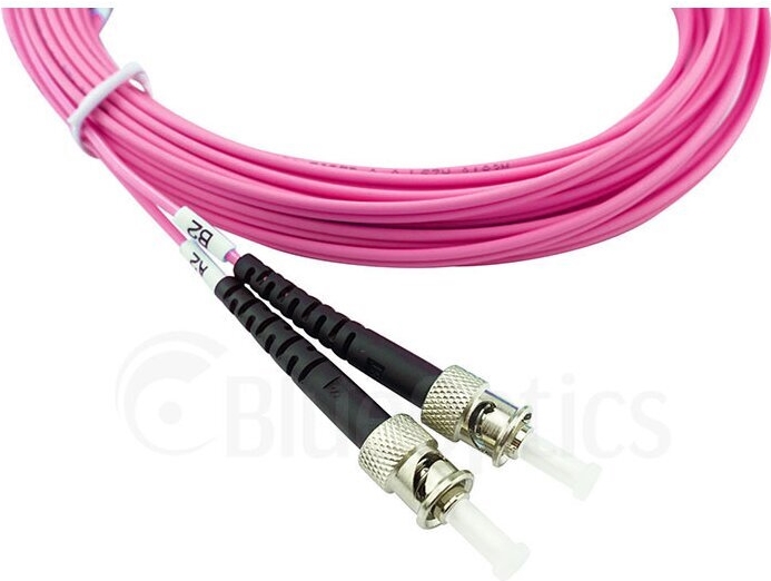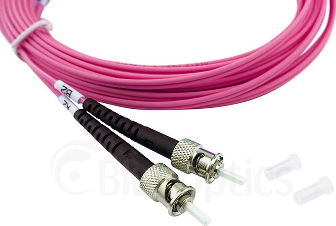 BlueOptics© Duplex LWL Patchkabel, ST-PC/ST-PC beige, 3 Meter, Multimode G50/125µm, OM4, Eingangsdämpfung: unter 0.2dB, Markenfaser, LSZH magenta / violett, 2.0mm Tube, Keramik Ferrule, inkl. Messprotokoll (SFP3333FU3MK)