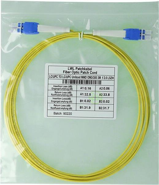 • BlueOptics Duplex LWL Patchkabel, LC Uniboot-UPC/LC Uniboot-UPC blau, 0.5 Meter, Singlemode E9/125µm, G.657.A1, OS2, Eingangsdämpfung: unter 0.2dB, Markenfaser, LSZH gelb, 2.0mm Tube, Keramik Ferrule, inkl. Messprotokoll (SFP8181BU0.5MK)