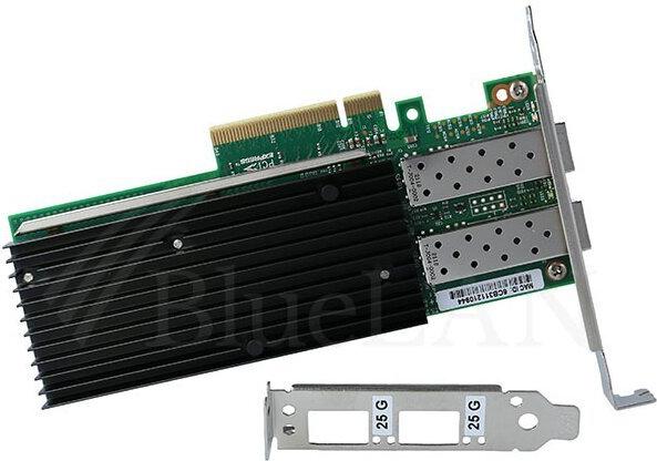 Die BlueLAN Ethernet Netzwerkarte (NIC) E810-XXVAM2 2xSFP28 Karte mit Intel Chipsatz für 25 Gigabit Ethernet und Fibre Channel over Ethernet Anwendungen ist für anspruchsvolle Rechenzentren und Cloud-Umgebungen konzipiert worden und stellt inzwischen auch