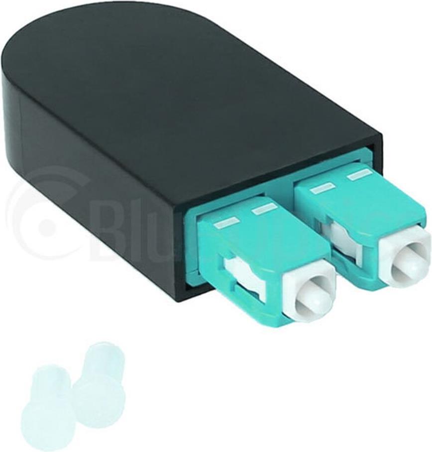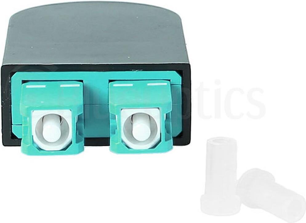 BlueOptics Lichtwellenleiter Loopback Adapter für OM3, G50/125µm Multimode SC/UPC-Duplex, aqua/türkis, Keramik Ferrule, -40°C bis +85°C (BOLBSCOM3)