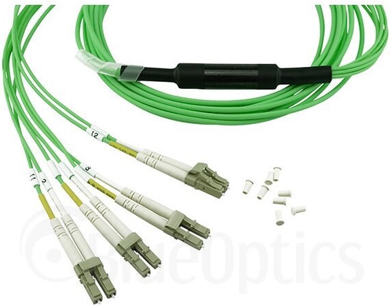 BlueOptics LWL Breakout Kabel, MPO/UPC, 4xDuplex LC/UPC, 1 Meter, Multimode G50/125µm, OM5, Markenfaser, 3.0mm LSZH limettengrün, 8 Kerne (Belegung 1-4 & 9-12, für QSFP Nutzung), inkl. Messprotokoll, MPO Stecker ohne Pins (SFP5141GU1MKB)