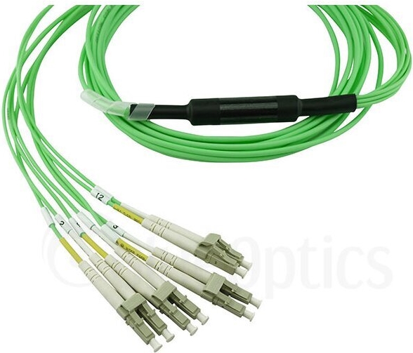 BlueOptics LWL Breakout Kabel, MPO/UPC, 4xDuplex LC/UPC, 7.5 Meter, Multimode G50/125µm, OM5, Markenfaser, 3.0mm LSZH limettengrün, 8 Kerne (Belegung 1-4 & 9-12, für QSFP Nutzung), inkl. Messprotokoll, MPO Stecker ohne Pins (SFP5141GU7.5MKB)