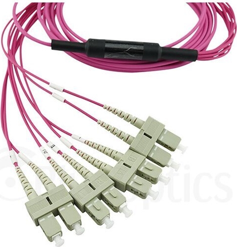 BlueOptics LWL Breakout Kabel, MPO/UPC, 4xDuplex SC/UPC, 2 Meter, Multimode G50/125µm, OM4, Markenfaser, 3.0mm LSZH magenta / violett, 8 Kerne (Belegung 1-4 & 9-12, für QSFP Nutzung), inkl. Messprotokoll, MPO Stecker ohne Pins (SFP5142FU2MKB)