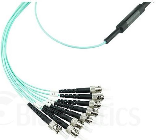 Optimale Glasfaserverbindungen BlueOptics Multifiber-Termination-Push-On (MPO) Breakout Kabel von CBO, mit 1x MPO/UPC auf 4x ST/PC Duplex Anschluss, LSZH (Low Smoke Zero Halogen) Mantel, mit 8 Kernen (Fasertyp ...