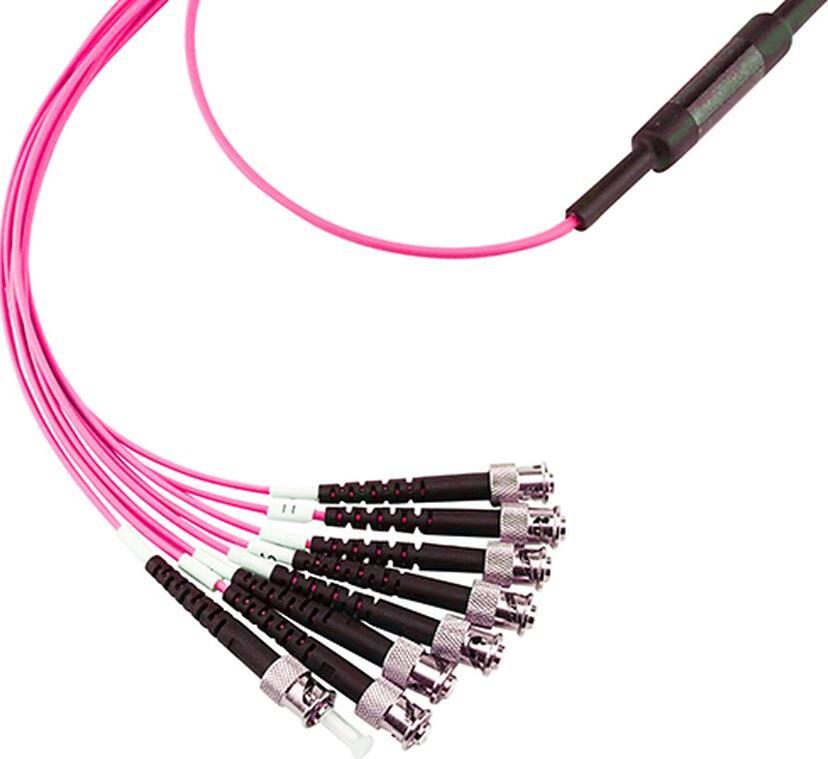 Optimale GlasfaserverbindungenBlueOptics© SFP5143FU3MK 3 Meter MPO (Multi- fiber Push-On) Breakout Kabel von CBO, mit 1x MPO/UPC auf 4x ST/PC Duplex Anschluss, LSZH (Low Smoke Zero Halogen) Mantel, mit 8 Kernen ...